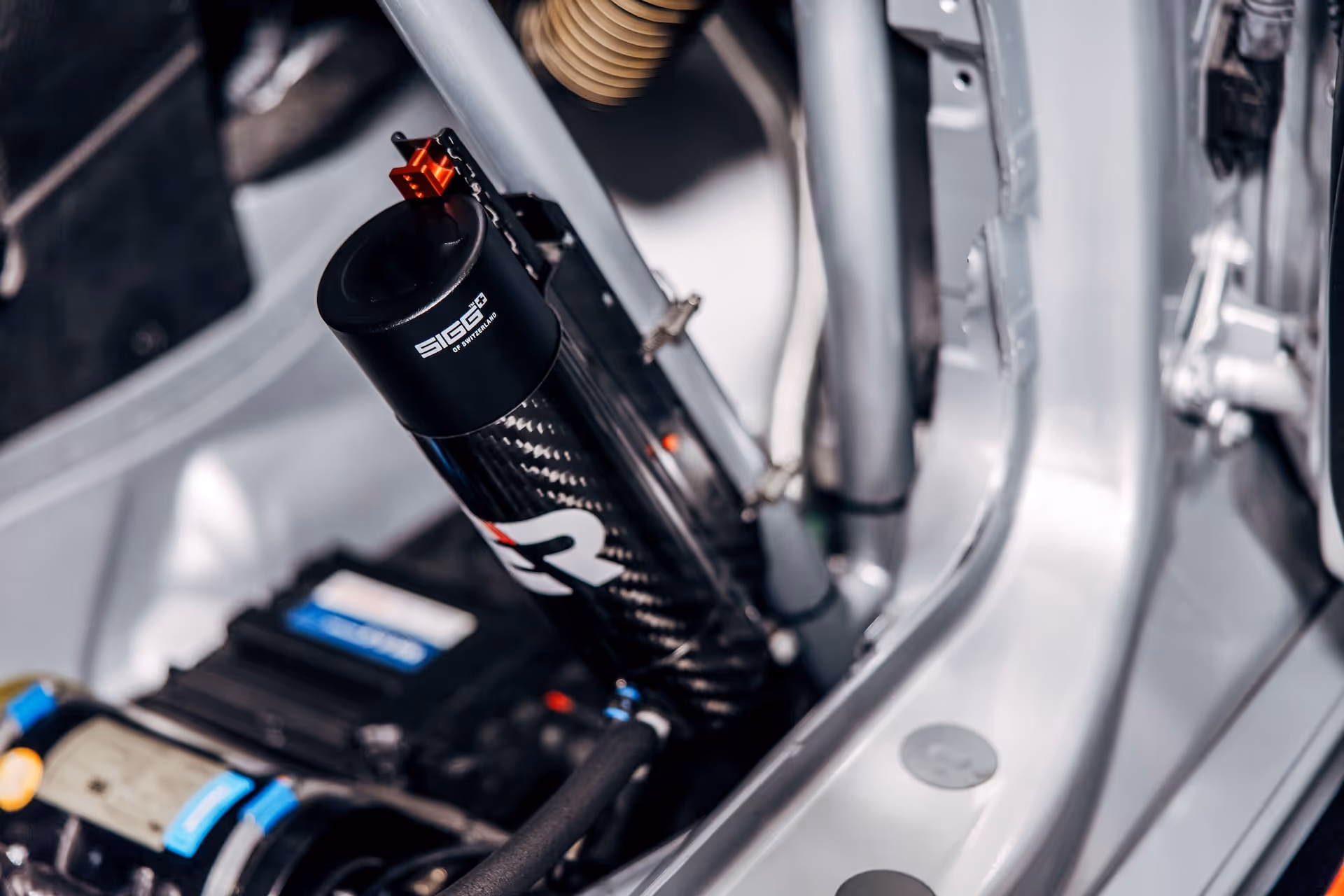 Mounted via a lightweight carbon bracket, it provides a true plug-and-play solution for a wide range of vehicle types.The quick-release bottle system allows for rapid changes during pit stops, while a cleaning kit and custom transport case ensure long service life and hygienic operation.