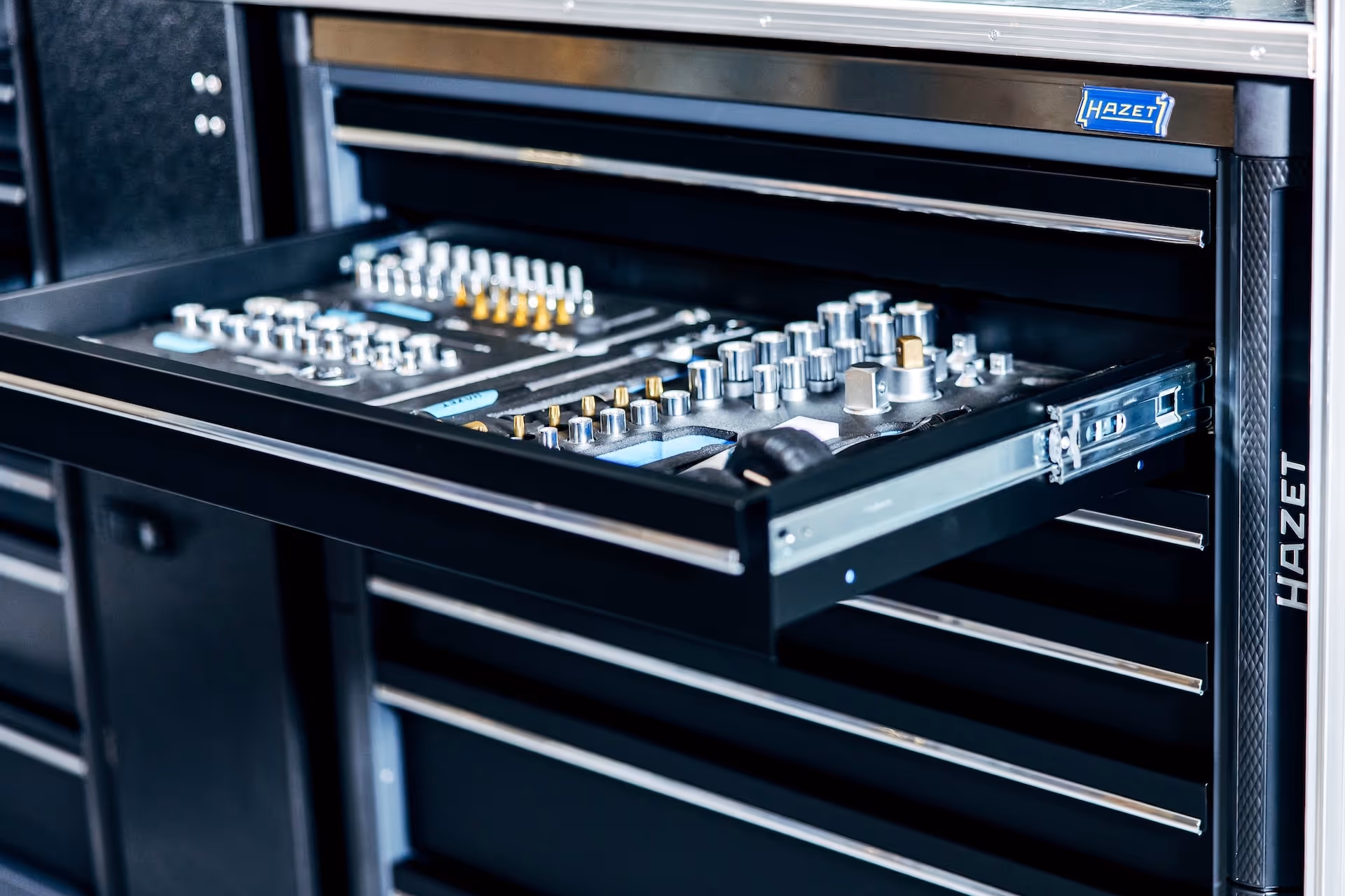Available with two empty, one filled and one empty, or two fully equipped Hazet tool trolleys.